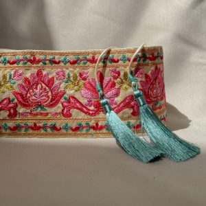 Off white beige and green embroidered obi belt | Unique accessories for woman | Handmade accessories